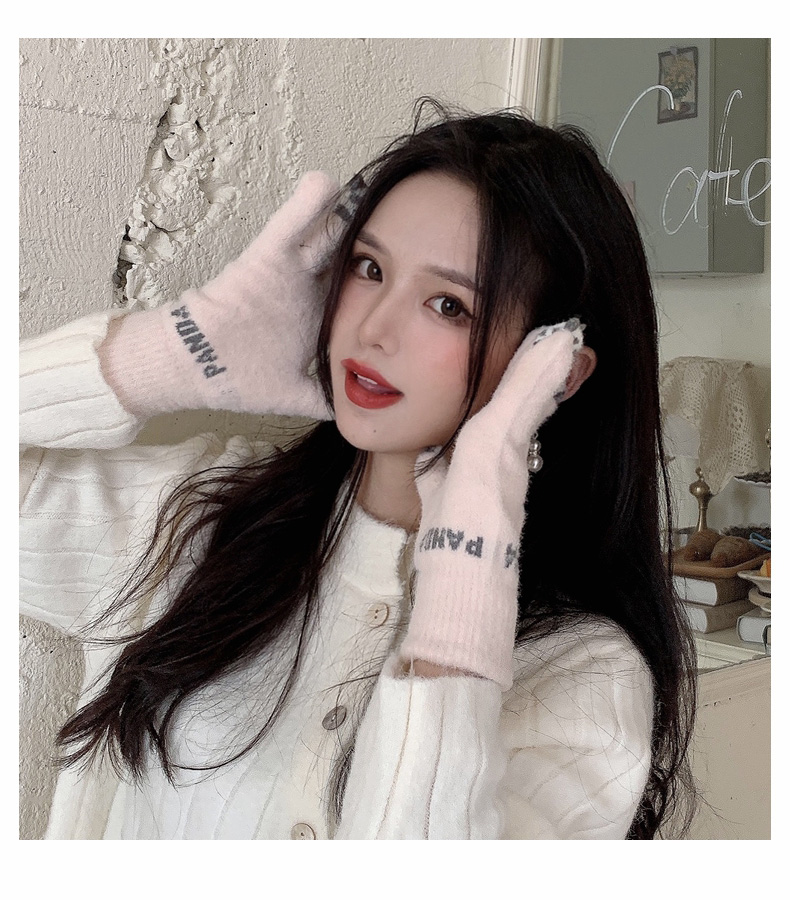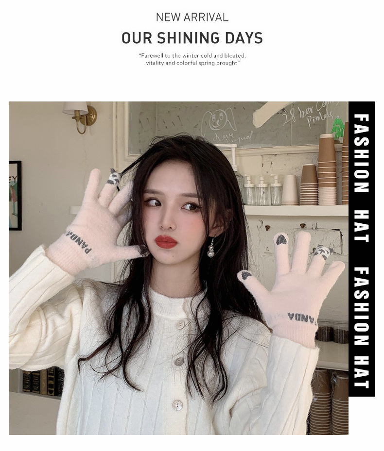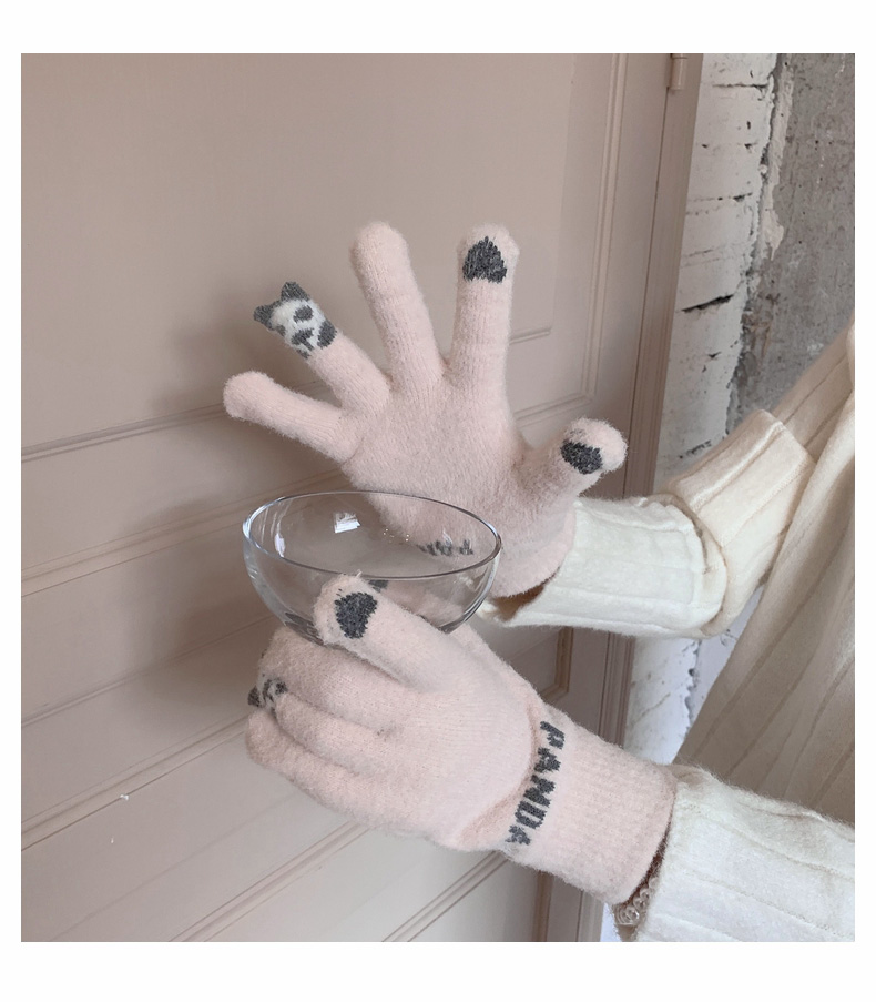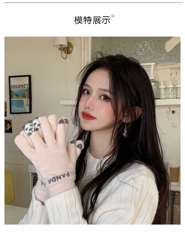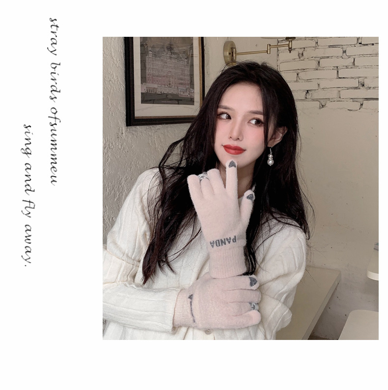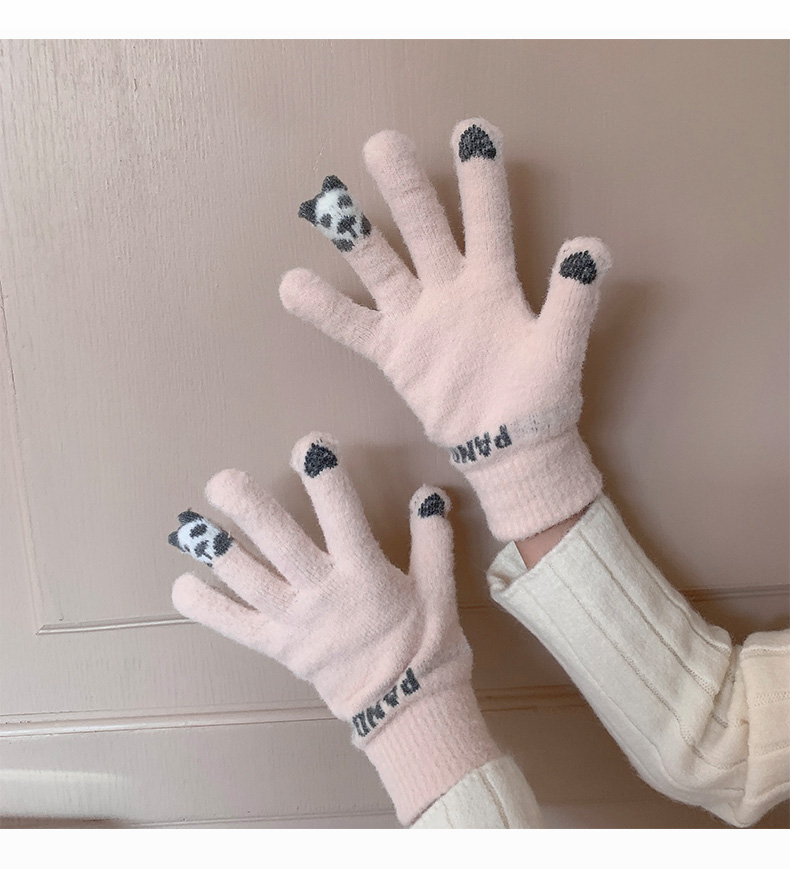 ⑤ Ins Gloves Winter Female Lesser Panda Fleece-Lined Warm-Keeping and Cold-Proof Cycling Students Wi